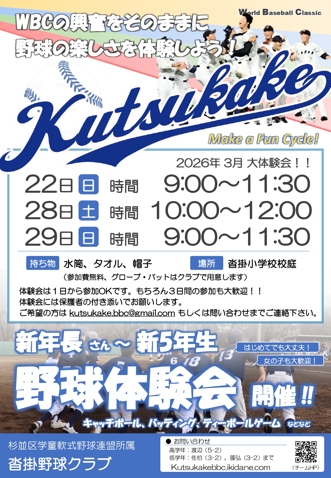 お問い合わせは沓掛野球クラブまでお気軽に連絡下さい。